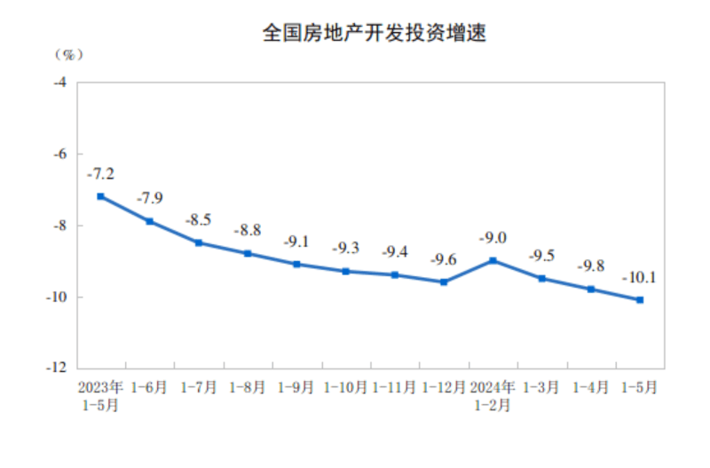 房企投资信心继续探底。1-5月份,全国房地产开发投资约4.06万亿元,同比下降10.1%;其中,住宅投资3.08万亿元,下降10.6%。