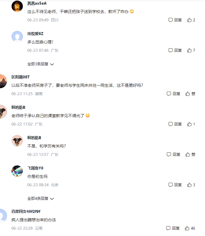 “以后不准老师买房子了,要老师与学生同床共住一同生活,这不是更好吗?”