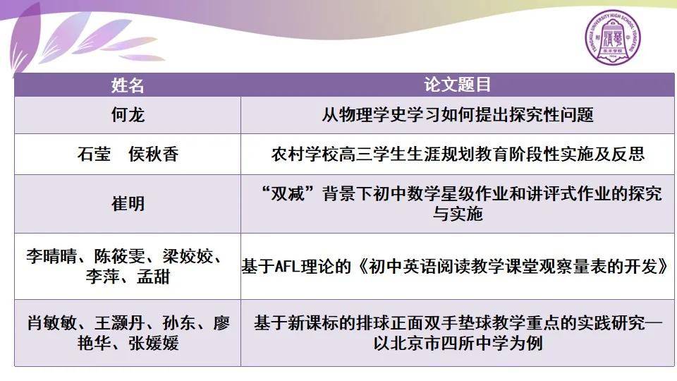 清华永丰通过校本研修工作的日常化、广泛化、多样化,使老师们从教育教学实践中的小现象、小问题、小策略入手,进而行动实践形成成果。可以说,课题研究能进一步促进我校教科研工作向纵深进展,增添老师们的科研意识,提升教师教育教学专业化水平,实现教师由“阅历型”向“科研型”的战略转变。