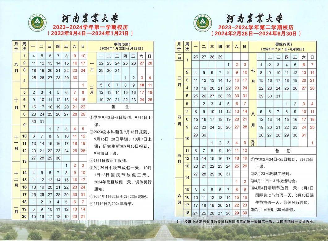 ③河南农业大学:7月1日至8月30日为暑假假期。