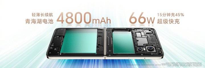 续航方面,荣耀Magic V Flip采用了领先的硅碳负极电池技术,使电池容量达到4800mAh,领跑竖折品类,支持66W超级快充,不光续航持久,没电的情况下也可以快速回血。