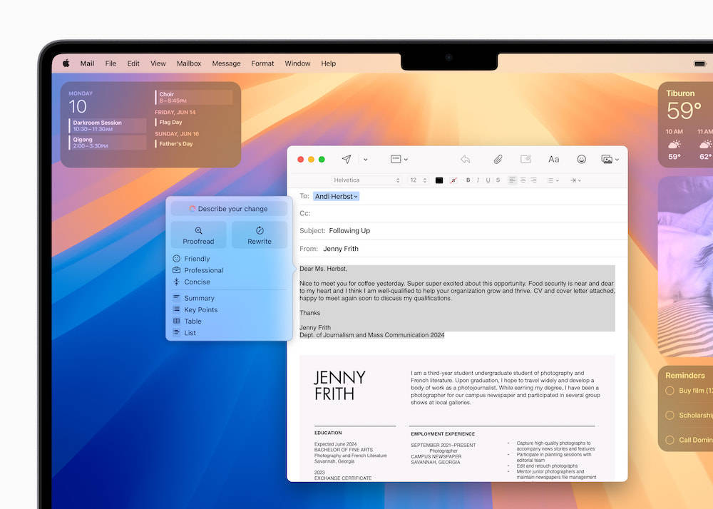 Apple 软件工程高级副总裁Craig Federighi称,随着iOS 18、iPadOS18和 macOS Sequoia的推出,Apple Intelligence将强大的生成式模型置于iPhone、iPad和Mac的核心,根据每个用户的具体情境来提供智能协助,实用性、相关性都很高,并且深度整合到各种平台。