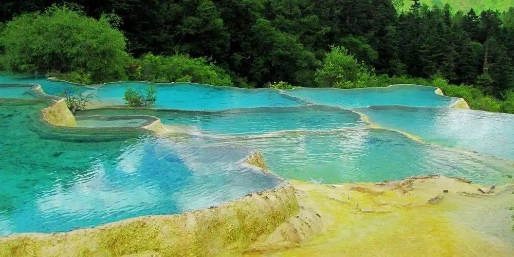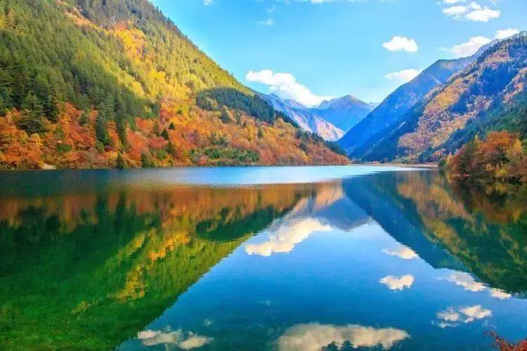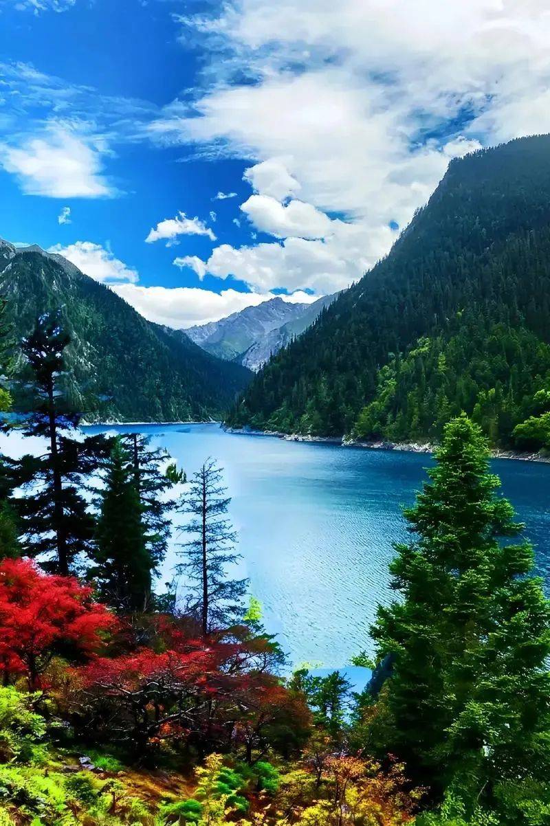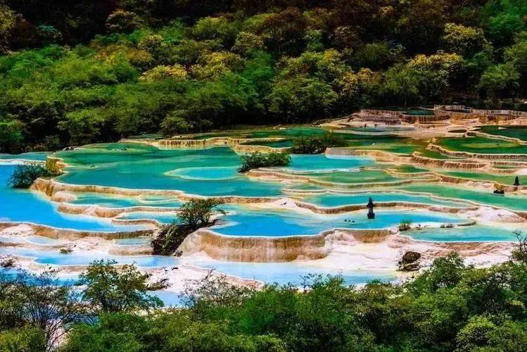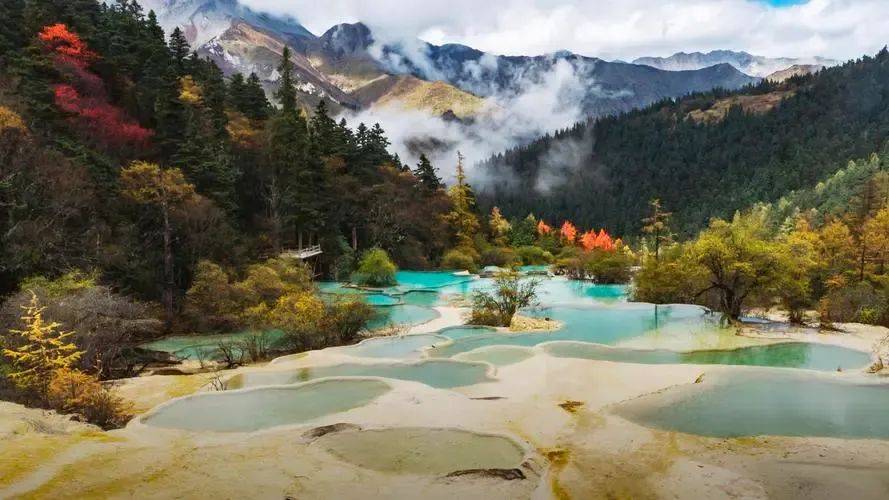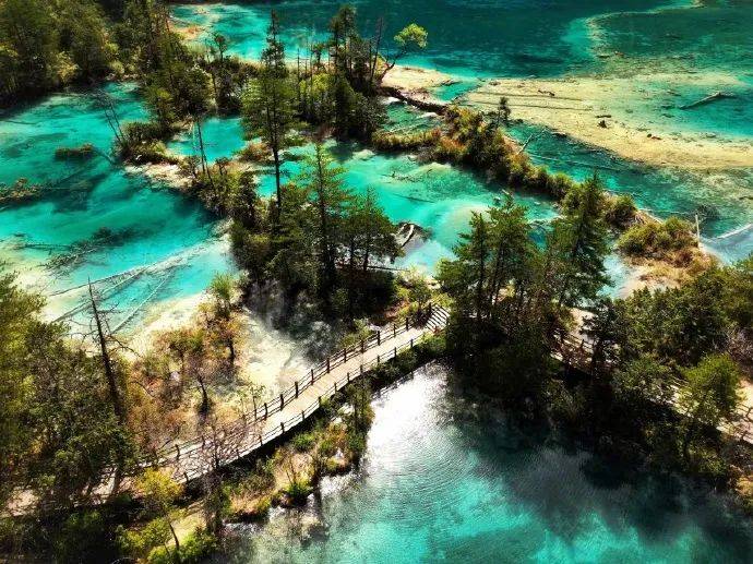 九寨沟的自然风光更是美不胜收。这里的湖泊清澈见底,湖水呈现出五彩斑斓的颜色,被誉为“五花海”。