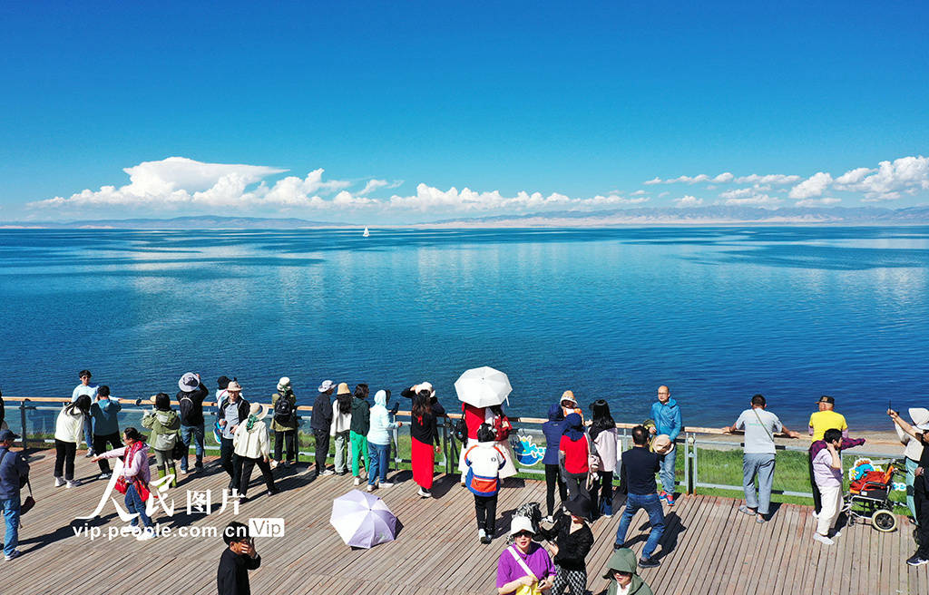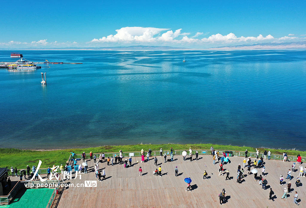 六月的青海湖风光壮美,吸引全国各地的游客纷至沓来。包康轩摄(人民图片网)