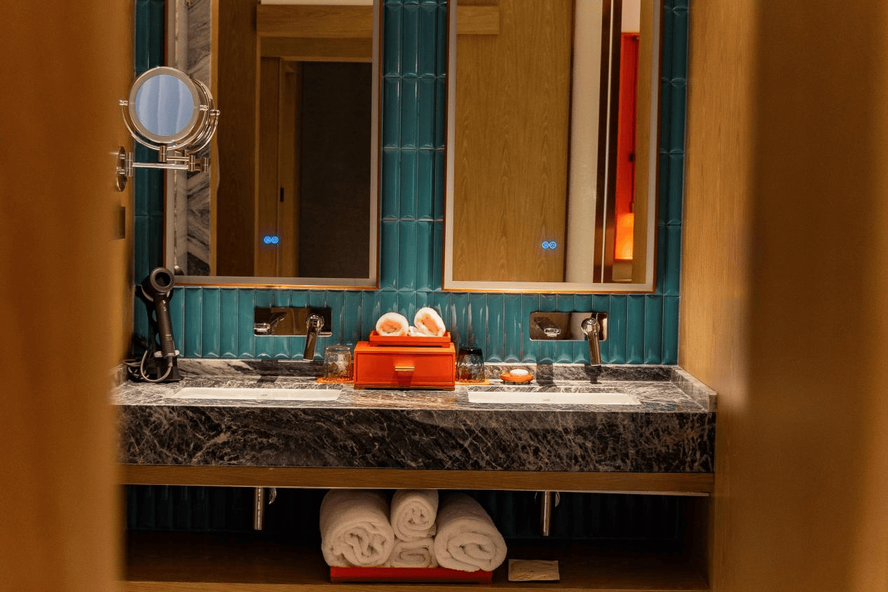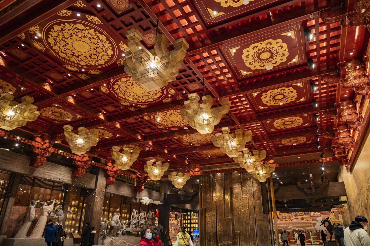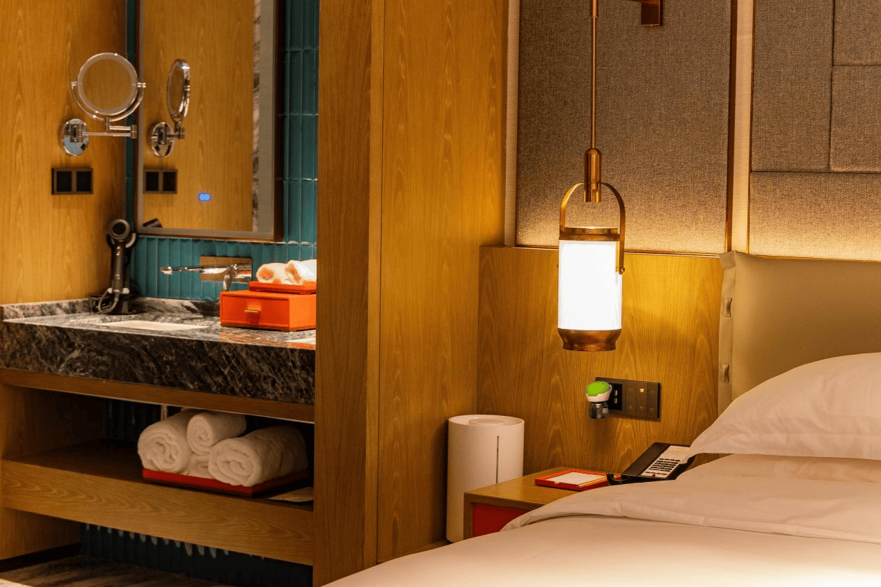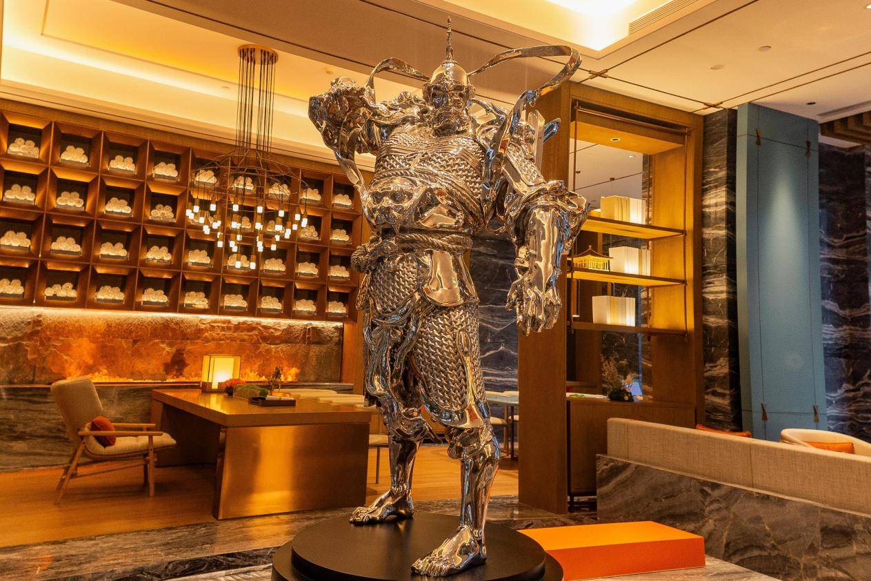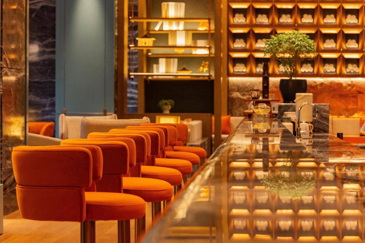 酒店的装修风格尽显中式优雅,仿佛将古典与现代完美融合。大堂吧让人沉醉于东方美学的魅力之中。空间的色彩搭配更是匠心独运,绿色如青石,橘色似黄丹,黄色若吉金,低调而又不失品味。这些色彩交织在一起,仿佛描绘出一幅幅生动的隋唐画卷。
