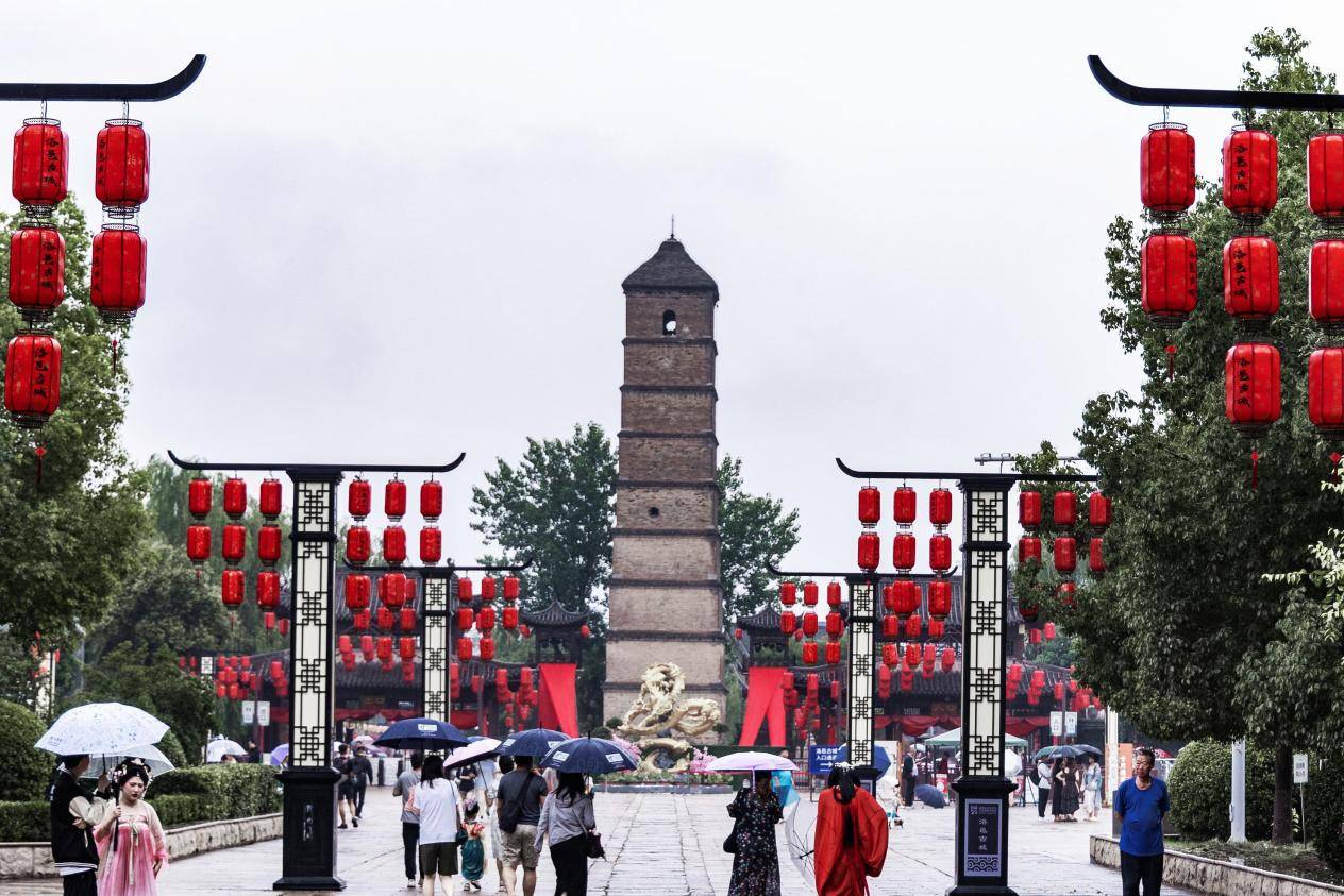 漫步在洛阳的街头巷尾,只见行人如织,车流穿梭。雨滴如珠,溅落在青瓦之上,溅起一圈圈涟漪。洛邑古城是洛阳的一颗璀璨明珠。在这里,我仿佛走进了一幅水墨画。烟柳画桥间,古塔烟波,雨声荷韵,绿水新池,每一处都充满了诗意。我漫步在古城的小巷中,感受着那份宁静与美好。