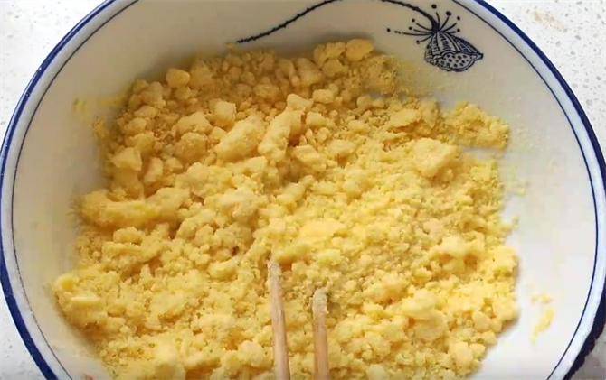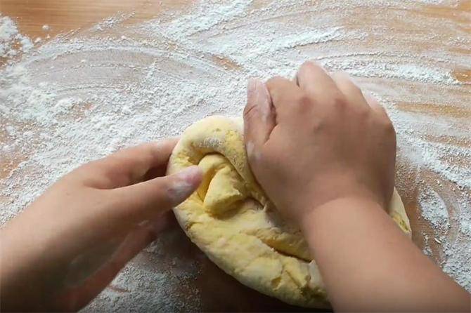 把玉米面用开水一烫,加点面粉,搅一搅,拧一拧,个个松软开花