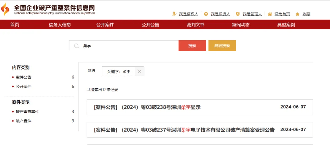 6月7日,全国企业破产重整案件信息网显示,6月6日,深圳市中级人民法院发布公告称,该法院已于2024年5月15日裁定受理柔宇科技破产清算一案,并指定广东华商律师事务所为柔宇科技管理人。